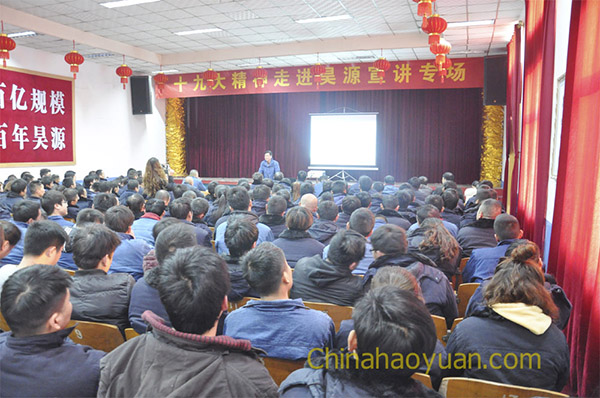 為全面學習宣傳貫徹黨的十九大精神,深刻領會習近平新時代中國特色社會主義思想和基本方略,深刻把握新論斷、新特點、新目的、新要求,12月10日下午,“十九大精神走進昊源宣講專場”在公司禮堂隆重舉行。來自生產車間、機關科室的400多名員工參加宣講學習。