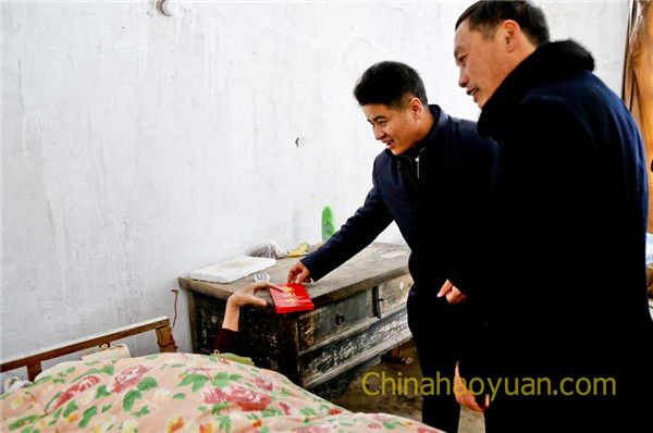 老王寨村第一書記、昊源集團扶貧干部毛永賢陪同慰問。