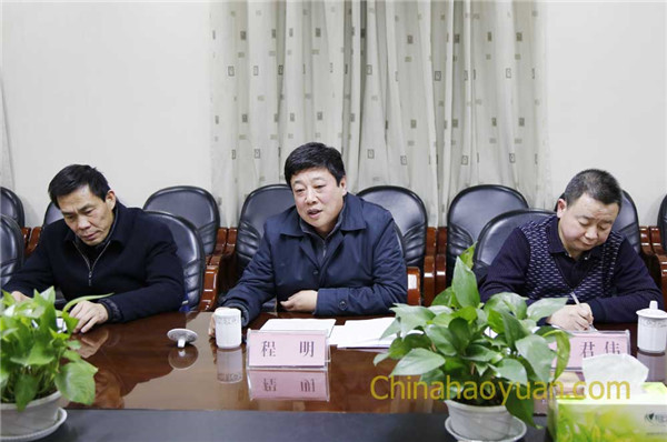 公司黨委副書記高玉磊向程明一行匯報了昊源公司2017年度生產經營、安全環保、園區項目建設進度、經營管理層激勵計劃、民生保障及黨建工作等情況,對工作中存在的問題和不足進行總結、分析,并對2018年度昊源公司工作計劃作簡要匯報。