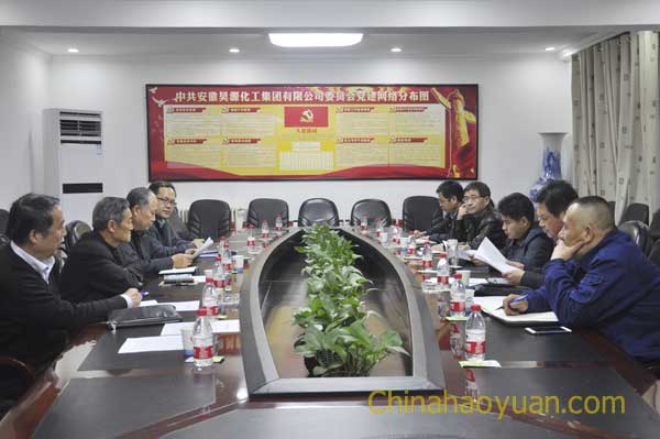 在公司會議室,凡殿才代表昊源公司歡迎顧宗勤理事長一行蒞臨昊源調研指導工作,并向顧宗勤一行介紹了昊源公司目前生產經營情況、技術改造、市場營銷及未來發展規劃。