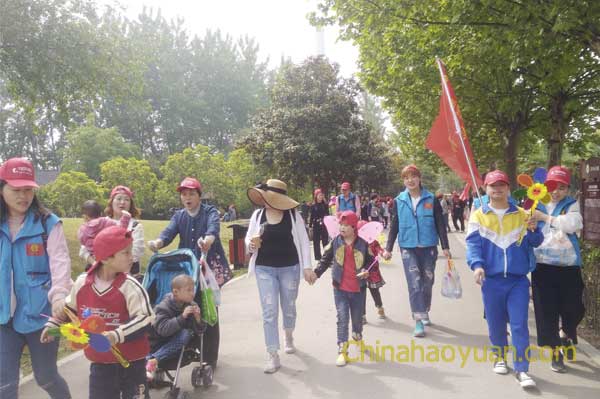 2018年4月25日,昊源志愿者服務(wù)隊(duì)攜手阜陽市福利院,帶領(lǐng)孤殘兒童來到阜陽生態(tài)園踏青游玩,讓孤殘兒童親近大自然,感受春天,增長見識(shí)。