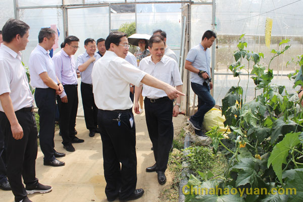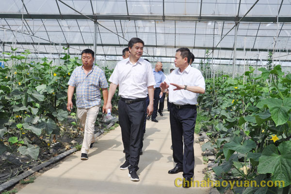 吳照明一行冒著酷暑深入田間地頭,實地查看了普惠農業公司現代化綠色無公害蔬菜大棚內長勢良好的各種瓜果蔬菜。楊捷在大棚內現場介紹了普惠農業公司目前種植的蔬菜種類,以及如何應用先進農業管理方法進行蔬菜種植管理過程。參觀人員紛紛表示通過實地參觀,打消了疑慮,增強了信心,堅定了決心。