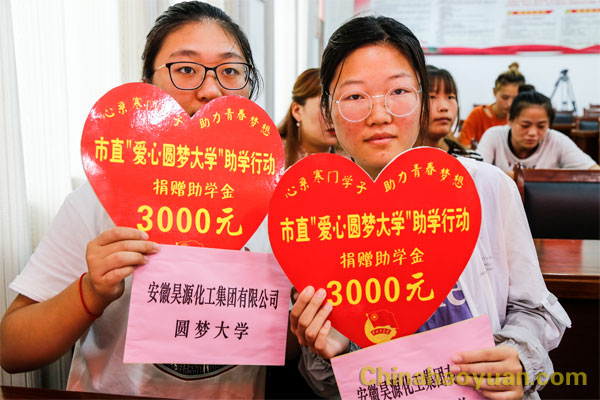 8月27日,安徽昊源化工集團有限公司“愛心圓夢大學”助學活動走進潁泉區寧老莊鎮椿樹村委會,將愛心助學款發放給家庭經濟困難的準大學生,用愛心資助他們圓夢大學。