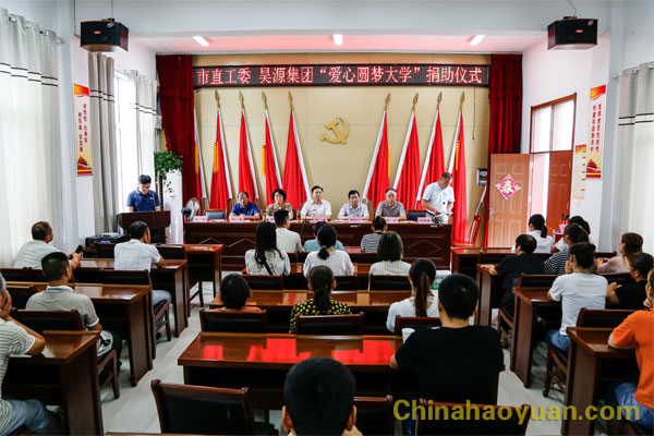 阜陽市直機關工委領導李濤、周君、劉振、高爐,昊源公司副總經理田懷廣、團委書記朱梅,椿樹村委書記沈俊強出席助學金發放儀式。