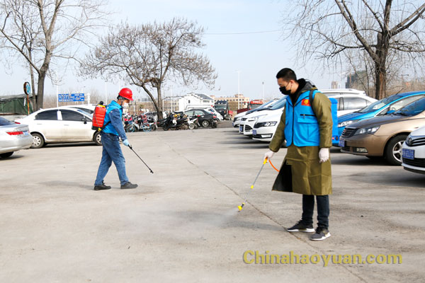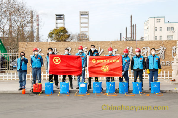 當前,新型冠狀病毒感染肺炎疫情的防控工作正處在關鍵時期,為積極響應公司黨委董事會防疫抗疫阻擊戰的號召,堅決貫徹落實公司防疫工作領導小組的決策部署。疫情當下,黨有號召,團有行動,2月10日下午2點,在公司團委的組織下,來自公司各個單位的十多位員工組成青年志愿者隊伍,他們戴上口罩和手套,穿上藍色昊源青年志愿者馬甲,背著消毒專用藥筒紛紛行動起來。
