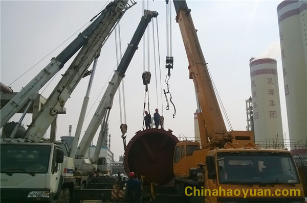 本次吊裝作業(yè)任務(wù)由公司化機(jī)公司和化工車間共同承擔(dān)。為了完成該設(shè)備的吊裝,化機(jī)公司動(dòng)用了四臺(tái)吊車、1臺(tái)叉車以及數(shù)十名吊裝工人,化工車間維修工也傾力配合。