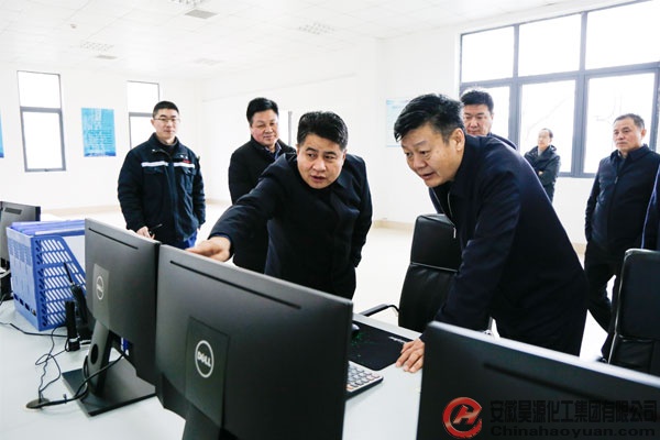 在公司會議室,凡殿才詳細匯報了昊源公司近年生產經營、園區項目規劃、園區安全環保、黨建與工會工作及園區近期擬建項目情況。他說,昊源公司現已發展成為集研發、生產、銷售于一體的綜合性化工企業。2016年啟動入園項目,在做大做強傳統化工產業的基礎上,大力發展化工新材料、高端化學品、精細化工品等新型化工產業,積極推進5G+智慧應用,構建數字化工廠,走出一條產業集聚、節能高效、綠色循環、智能制造的可持續發展道路。