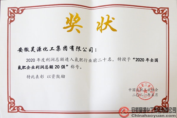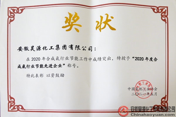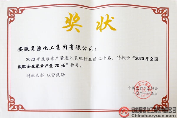 會上,安徽昊源化工集團有限公司被授予 “2020年全國氮肥企業(yè)尿素產(chǎn)量20強”、“2020年全國氮肥企業(yè)合成氨產(chǎn)量20強”、“2020年全國氮肥企業(yè)利潤總額20強”、“2020年度合成氨行業(yè)節(jié)能減排先進企業(yè)” 4項榮譽稱號。