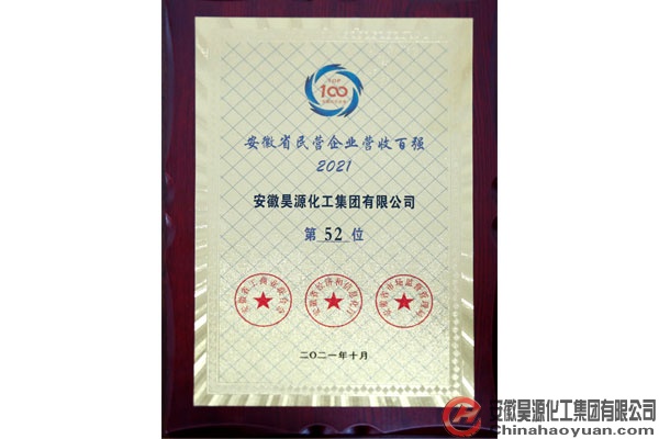 10月21日,安徽省工商業聯合會在阜陽召開2021安徽省民營企業百強發布會暨百強民營企業走進阜陽活動,現場發布了2021安徽省民營企業百強和安徽省民營企業制造業百強榜,昊源公司再次蟬聯榜單,分別排名第52位、35位。