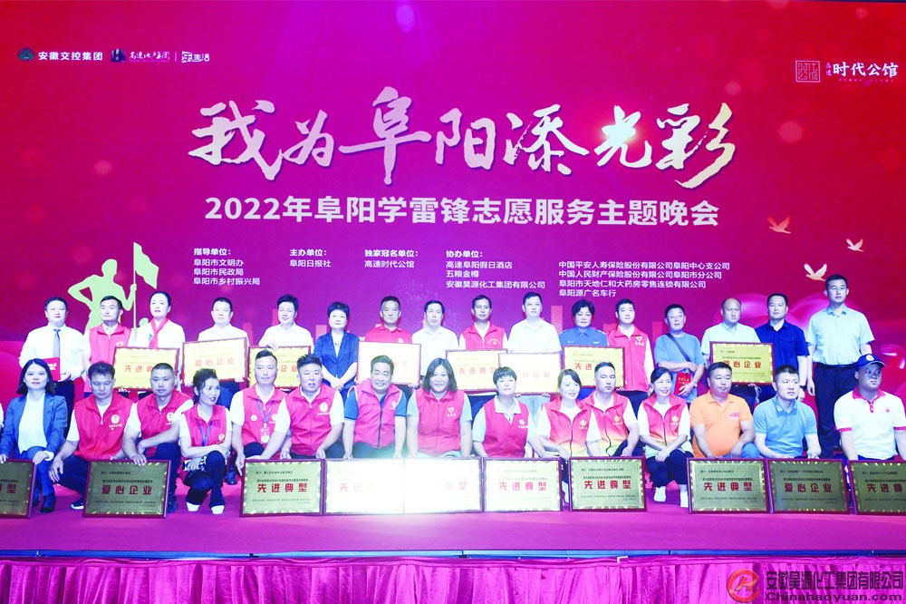 7月3日下午,由阜陽日報、潁州晚報社主辦,昊源化工集團、阜陽假日酒店等單位協辦的“我為阜陽添光彩——2022年阜陽學雷鋒志愿服務活動主題晚會”在阜陽假日酒店舉行,昊源公司黨委副書記、副總經理高玉磊出席晚會。會上,昊源公司被授予“愛心企業”榮譽稱號。