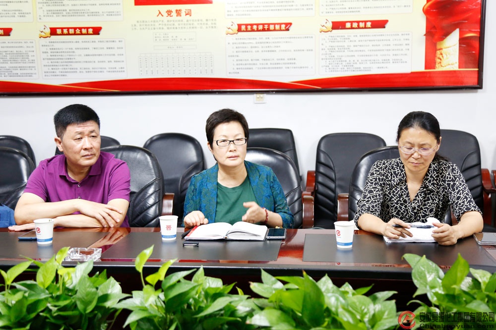 8月17日,市委統戰部副部長、市工商聯黨組書記梁紅群,市委統戰部副部長郭陽一行在潁東區委統戰部常務副部長劉光輝陪同下到昊源公司就民營企業貫徹落實統一戰線工作條例情況進行調研。昊源公司黨委副書記、副總經理高玉磊,總經理助理潘家成及相關科室人員陪同。