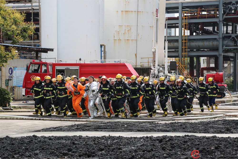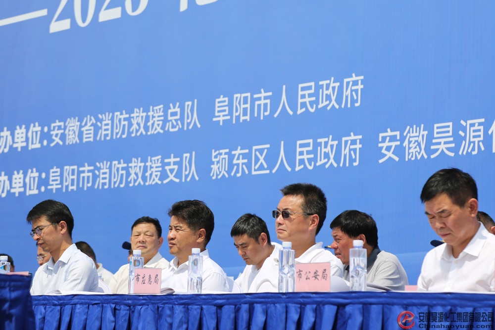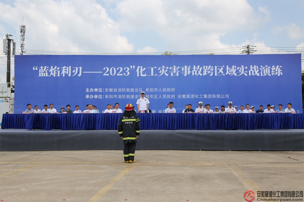 為檢驗全省消防救援隊伍跨區域聯合作戰和與地方應急聯動力量協調處置能力,提升隊伍應對化工災害事故處置的實戰水平,9月14日,由安徽省消防救援總隊、阜陽市人民政府主辦,阜陽市消防救援支隊、潁東區人民政府,安徽昊源化工集團有限公司承辦的“藍焰利刃--2023”化工災害事故跨區域實戰演練在昊源公司老廠停產裝置區開展。阜陽市委副書記、市長胡明文,安徽省消防救援總隊長李斌、副總隊長王其堪,阜陽市副市長、公安局長張曉東,阜陽市消防支隊政委孟向東,市政府法制辦黨組書記、主任朱敬田,昊源公司黨委書記、董事長凡殿才出席活動并觀摩演練。公司副總經理張海生參加演練應急救援指揮。