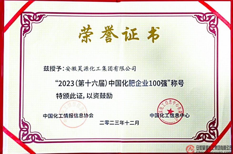 12月14日,由中國化工信息中心、中國化工情報信息協會、山東省泰安市人民政府聯合主辦的“2023第十六屆中國化肥百強評選發布暨中國化肥產業可持續發展高峰論壇”在山東泰安召開,會上正式發布了“2023中國化肥企業100強”名單,安徽昊源化工集團有限公司入選榜單。