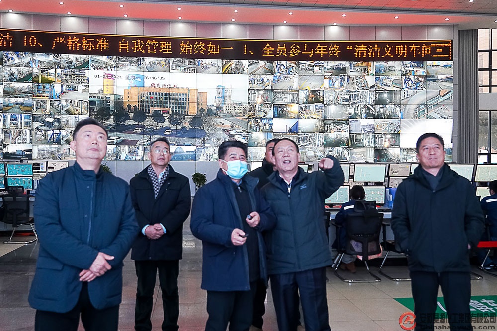 在生產控制中心,凡殿才向葉露中一行詳細匯報了園區項目建設進展、運行狀況、發展規劃及產品產能、用途等情況。