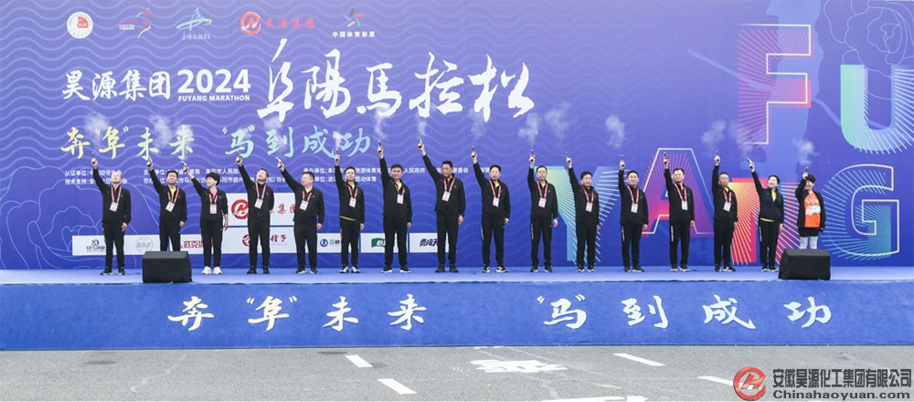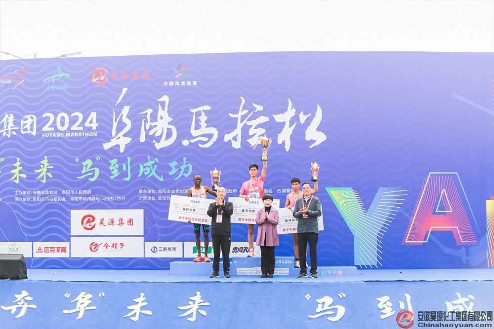在企業(yè)授牌環(huán)節(jié),市領(lǐng)導(dǎo)為昊源公司頒發(fā)“昊源集團(tuán)”2024阜陽(yáng)馬拉松官方總冠名單位獎(jiǎng)牌。