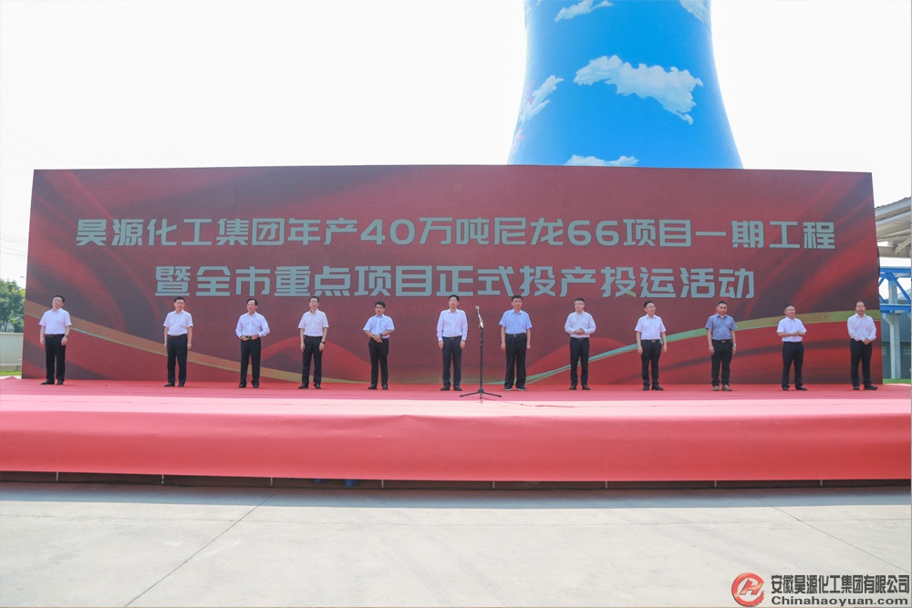 8月24日,安徽昊源化工集團有限公司年產40萬噸尼龍66一期工程等阜陽市總投資201億元的46個重點項目正式投產投運,為阜陽市產業結構升級和經濟發展再添新動力。市委書記劉玉杰出席活動并宣布項目投產投運,市委副書記、市長胡明文講話。市領導李志偉、王波、鄭久坤、虞建斌、陳東,市政府秘書長孫存坤參加。公司黨委書記、董事長凡殿才會上發言。