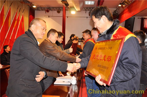 公司副總經理張海生宣讀公司《關于表彰2015年度先進集體、先進個人的通知》。共表彰先進單位7個、先進班組15個、先進中層管理者29名、先進基層管理者63名、先進員工149名、優秀黨員18名、優秀團員18名、優秀工會會員30名、先進黨支部2個、先進工會分會2個、先進團支部2個、安全生產先進單位2個、五好家庭5個。出席會議的領導分別為先進集體、先進個人和五好家庭頒獎。