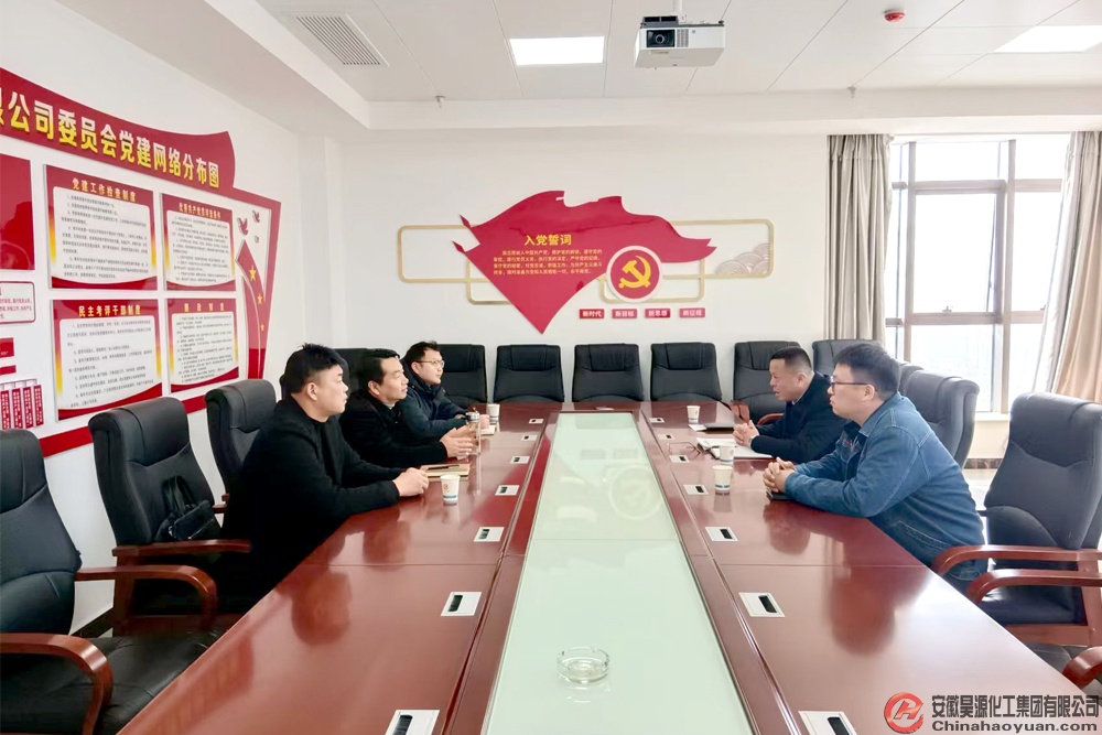 在研發(fā)中心七樓會議室,謝為民向徐曉東一行匯報了昊源公司生產(chǎn)經(jīng)營和黨建活動開展情況,同時感謝潁東區(qū)委區(qū)政府長期以來對昊源公司的大力支持。