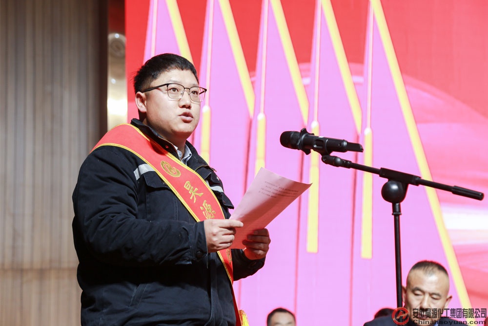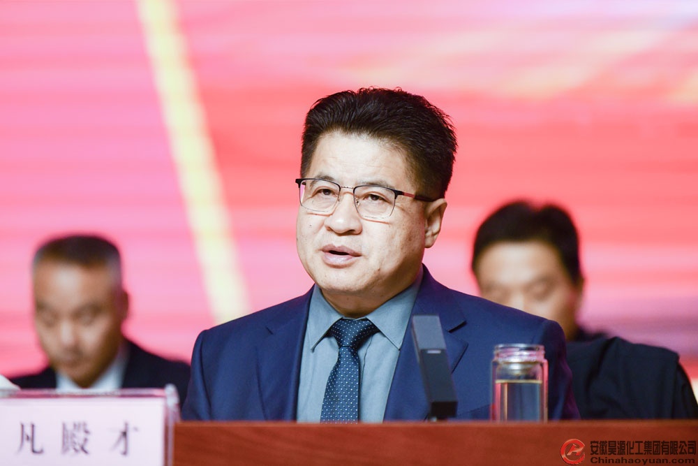 凡殿才董事長首先代表昊源公司黨政向一年來為公司發(fā)展做出積極貢獻(xiàn)的全體干部員工表示衷心感謝!向即將受到表彰的先進(jìn)集體、先進(jìn)個(gè)人等榮譽(yù)獲得者表示熱烈祝賀!
