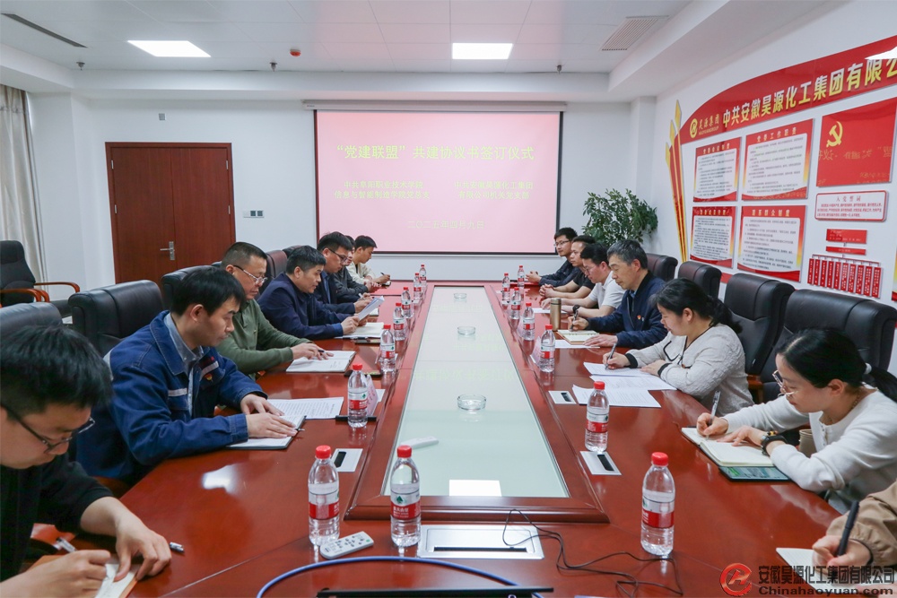 在研發中心七樓會議室,姚克亮向楊輝一行簡要介紹了公司發展歷程、生產經營、項目建設及黨建活動開展情況。希望借助阜陽職業技術學院的科研技術創新平臺,加強雙方在黨建、人才、陣地等方面合作交流,以共享共建為基礎,共同推進企業在科技創新和黨建工作中取得新突破。