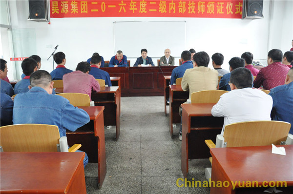 4月12日,昊源集團2016年度內(nèi)聘技師頒證儀式在公司培訓中心舉行。出席頒證儀式的公司領導有黨委書記、董事長凡殿才,副總經(jīng)理張海生、總經(jīng)理助理吳珍漢。頒證儀式由工會主席、副總經(jīng)理高玉磊主持。公司領導為王單等四十五名技師頒發(fā)聘書,體現(xiàn)了企業(yè)“靠能力競爭、靠平臺發(fā)揮、靠通道成長”的人才成長理念,為技能人才成長構(gòu)建平臺和通道。