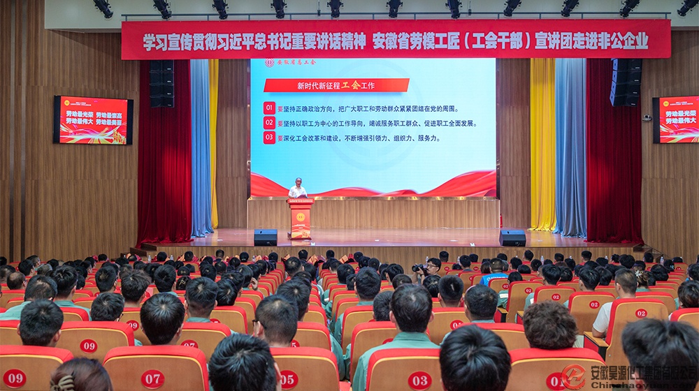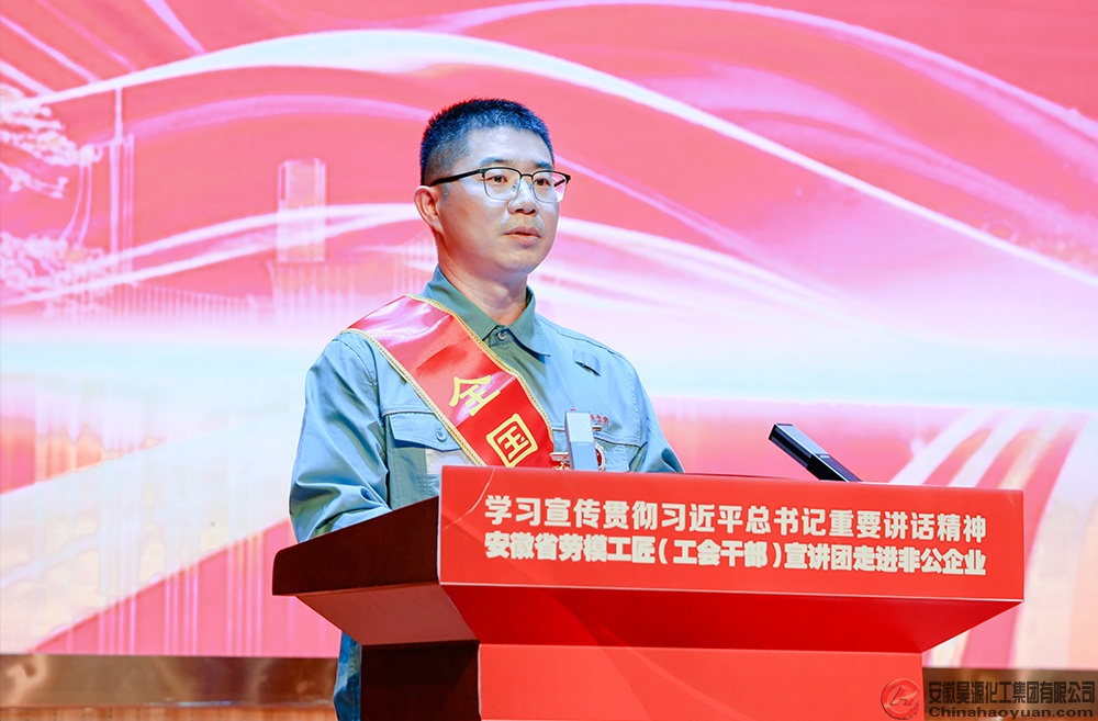 7月16日,學習宣傳貫徹習近平總書記重要講話精神安徽省勞模工匠(工會干部)宣講團活動走進安徽昊源化工集團有限公司,省總工會黨組書記、副主席徐發成以《奮斗百年路 啟航新征程》為題,圍繞學習宣傳貫徹習近平總書記在慶祝中華全國總工會成立100周年暨全國勞動模范和先進工作者表彰大會上的重要講話精神作主旨宣講。安徽省總工會黨組成員、副主席朱穎,阜陽市人大常委會副主任、市總工會主席周擁軍,潁東區委書記趙群,昊源公司黨委書記、董事長凡殿才出席活動。