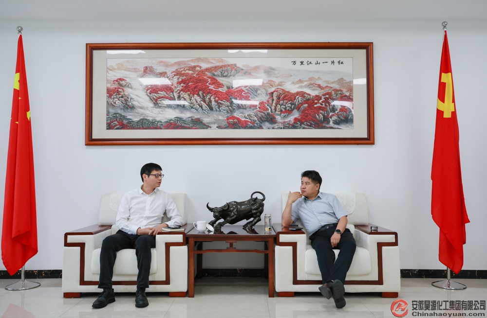 8月1日,興業銀行合肥分行劉文俊副行長一行在興業銀行阜陽分行程笑顏行長的陪同下,蒞臨昊源公司指導交流,公司黨委書記、董事長凡殿才,財務處副處長郭俊陪同。