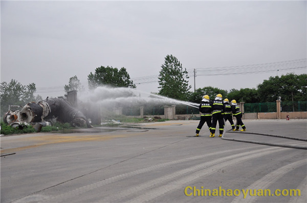演練以航天爐系統甲醇罐區西部設備著火為假想,進行及時撲滅著火,并對著火現場進行人員搜救。