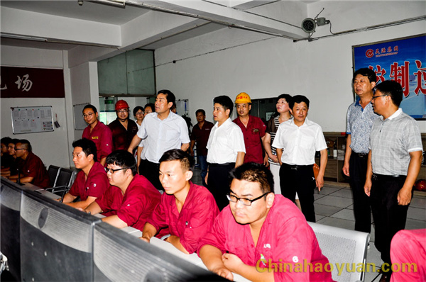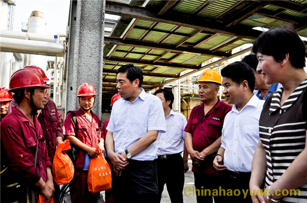 2016年7月27日,阜陽市連續高溫天氣,給人們生活、工作帶來不便。市委副書記盧仕仁在市總工會黨組書記、副主席房繼紅及有關部門人員陪同下,冒著高溫酷暑蒞臨昊源公司,慰問高溫環境下仍堅守生產一線的干部、員工。公司黨委書記、董事長凡殿才,副總經理張海生,總經理助理吳珍漢,工會副主席戚偉、楊波等陪同。