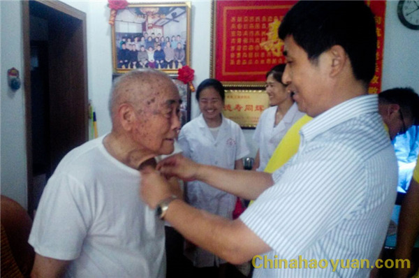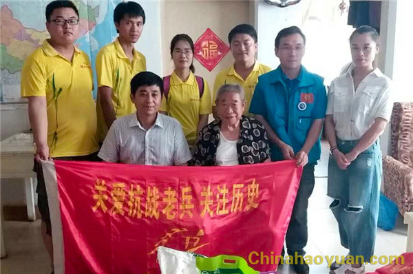 八一建軍節到來之際,2016年7月31日上午,昊源集團志愿者服務隊,代表昊源集團,帶著面、油、白糖、衣服、牛奶等慰問品,先后來到阜城原30軍31師93團抗戰老兵陳永法、原國民革命第八路軍115師5團2營抗戰老兵楊懷春、原國民革命第八路軍抗戰老兵王保珍、原國民革命新編第四軍1師3旅特務營抗戰老兵徐殿明、原豫皖蘇軍區4師抗戰老兵趙元貞五位前輩的家中,向他們表示慰問。其中趙元貞老前輩在原阜陽縣政府工作時,就分管昊源集團(原化肥廠),對昊源集團最近的發展情況,非常關心。