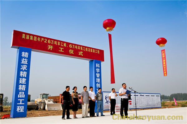 高明林在開工儀式上講話。他代表昊源集團(tuán)感謝阜陽市委、市政府及潁東區(qū)委、區(qū)政府對(duì)年產(chǎn)26萬噸苯乙烯和6萬噸環(huán)氧乙烷及配套項(xiàng)目的大力支持,從而保證了項(xiàng)目的快速推進(jìn)和及時(shí)開工。