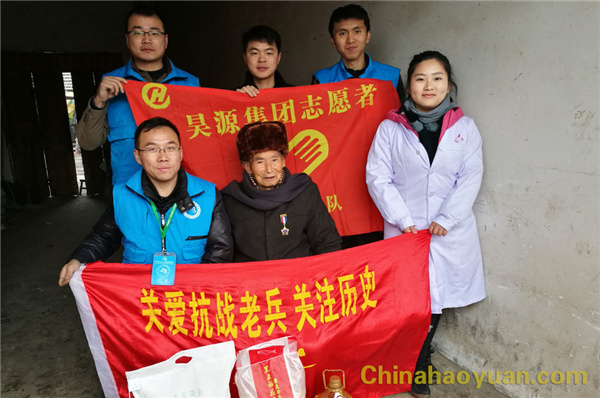 2017年1月7日早上8點,由昊源集團志愿者服務隊牽頭主辦的“英雄不朽、老有所衣”,關愛阜城抗戰老兵暖冬活動啟動,載滿活動物品的車隊分二路前往潁上和潁東區進行慰問。昊源集團志愿者服務隊在隊長唐殿志的帶領下,趕往潁東區偏遠鄉村,先后看望了10位老兵,給老兵們送上了米、面、油、核桃仁、羽絨服、雷鋒帽等愛心物資。老人們心情十分高興,激動得緊握著志愿者的手,表達對大家的感謝之情。