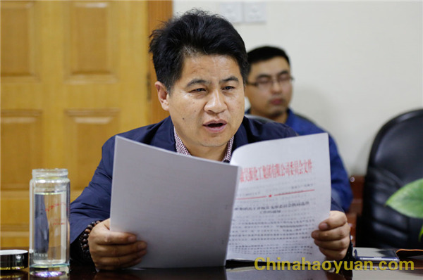 公司黨委副書記楊捷宣讀《昊源集團關于開展黨支部委員會換屆選舉工作的通知》