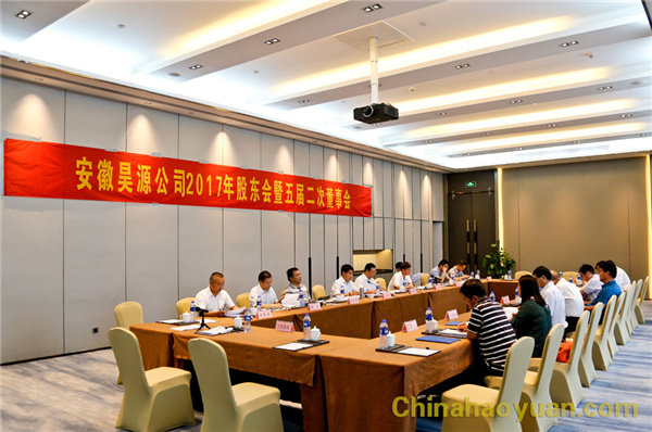 會議由昊源公司黨委書記、董事長凡殿才主持。2017年股東會暨五屆二次董事會審議通過了《關于昊源公司2016年度董事會工作報告的議案》等16項議案。