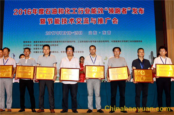 7月18日,中國石油和化學工業聯合會在山東東營召開了2016年度石油和化工行業能效“領跑者”發布暨節能技術交流與推廣會,安徽昊源化工集團有限公司榮獲中國石油和化學工業聯合會2016年度能效領跑者標桿企業(合成氨、甲醇)稱號,并與會表彰。會議重點發布了煉油、乙烯、甲醇、合成氨等17個產品能效“領跑者”標桿企業名單及指標,“領跑者”的能效水平正在成為行業能耗標準的先進值,企業也努力向先進值靠進,以推進石化行業綠色發展和轉型升級,持續提升能源利用效率,充分挖掘重點耗能產品節能潛力,推動行業節能降耗工作。