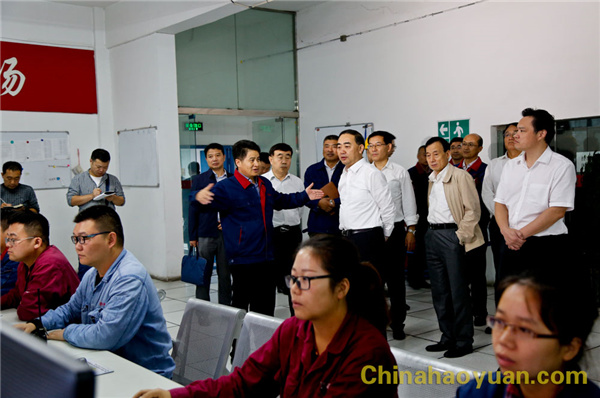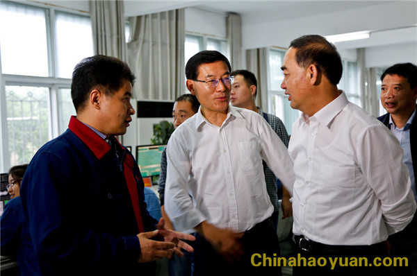 凡殿才向孫正東一行匯報了公司近期生產經營和園區項目建設情況。他說,公司兩套航天爐系統生產運行穩定,能源消耗低、安全系數高、環境保護好,已開出國內最好水平。昊源公司的阜陽煤基新材料產業園區一期項目已基本土建結束,全面進入設備安裝階段,預計2018年4月可建成試生產。