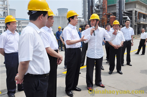 在視察中,昊源集團董事長饒金鐸同志向張寶順書記詳細匯報了我公司近幾年的生產、經營情況以及今后的發展目標。昊源集團始建于1970年,是一家國營小氮肥廠,2003年按照國家加快企業改制的要求,公司實施企業整體改制,雙置換為全民營企業,成立了安徽昊源化工集團有限公司。 2007年公司與晉煤集團實施戰略合作,成為國有控股企業,依托晉煤集團優質的煤炭資源及科學規范的管理,企業步入了飛速發展的快車道。經過四十年的發展,企業由年產3000噸合成氨的小廠發展成為年產100萬噸總氨、100萬噸尿素的國有控股企業。為進一步加快企業發展,公司以技術進步為先導,投資26億元建設航天爐項目,“18•30”、“12•20”等項目也正在建設之中。這些項目的實施、投運,將為昊源集團的發展注入新的活力和動力,同時也是低碳經濟的高效能源利用。