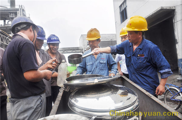 首先,公司為每位員工發放了白糖、清涼油及勞保用品等,同時,還組織機關科室負責人每天都為生產崗位上的一線員工送茶水、飲料、綠豆湯等,同時,公司領導經常深入一線看望和慰問高溫下奮戰在生產一線的干部員工,充分肯定了他們為昊源的建設與發展,堅守崗位,為昊源的安全高效運轉,付出了辛勤的汗水。