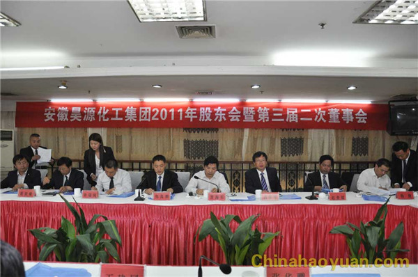 5月12日,昊源集團公司2011年股東會暨三屆二次董事會、監事會在阜陽市國際大酒店隆重召開。出席此次會議的有晉煤集團紀委副書記、巡視辦專職副主任賈海軍,巡視員申瑞聞、尚彥軍等領導一行,昊源集團公司股東鄭高潮(總經理)、昊源集團公司其他股東和股東代表。會議由公司鄭高潮先生主持。