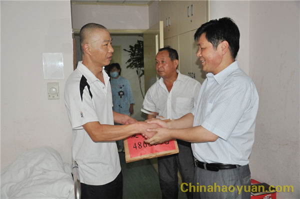 8月17日,公司副總經(jīng)理高玉磊攜工會(huì)副主席滑海東、李文平一行,帶著公司和全體員工的重托與祝愿,攜著沉甸甸的愛,不遠(yuǎn)千里趕赴上海腫瘤醫(yī)院,及時(shí)的將愛心捐款送到翟金良的手中。