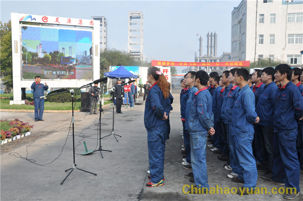 金秋送爽,碩果累累。經過一個月緊張的軍事訓練,昊源集團所有參加軍訓的員工迎來了激動人心的時刻。11月1日,集團公司操場上成了藍色的海洋,公司“軍訓月”匯操表演暨表彰大會在這里隆重舉行。公司黨委副書記、副總經理李繼忠,副總經理高玉磊、楊捷、凡殿才、田懷廣,總經理助理高明林、張海生,界首昊源公司總經理李廣修,阜南新天總經理王玉杰等領導出席本次大會。大會由公司工會主席、副總經理高玉磊主持。