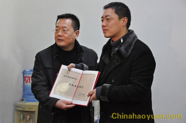 1月4日,阜陽(yáng)市總工會(huì)副主席馬躍進(jìn)、經(jīng)濟(jì)部部長(zhǎng)楊建才一行受市委、市政府的委托,來(lái)公司為黨委書(shū)記、董事長(zhǎng)鄭高潮頒發(fā)市2011年度勞動(dòng)模范榮譽(yù)證書(shū),表達(dá)黨和政府對(duì)勞動(dòng)模范的關(guān)懷,并為公司全體員工帶來(lái)了新春祝福。