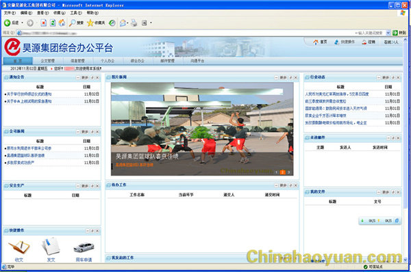 在公司領導的高度重視和各部門人員的緊密配合下,昊源集團OA辦公系統經過北京普巴安徽分公司技術人員緊張有序地程序研發、修改完善、測試調試, 11月1日,該系統正式上線試運行。系統包含公文管理、信息管理、個人辦公、綜合辦公、郵件管理、溝通平臺六個模塊。OA辦公系統的成功上線將進一步提高公司現代化信息管理水平和決策效率。同時,將為公司的高效辦公,工作流程標準化、制度化奠定堅實基礎。