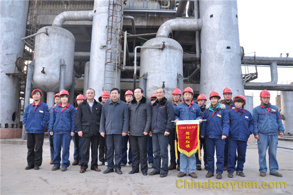 隨后,在李書記的陪同下,沈基明副書記深入到生產(chǎn)一線為被評為12月份“黨員文明崗位”的化工車間、建筑公司進行授旗,并與黨員代表合影留念。