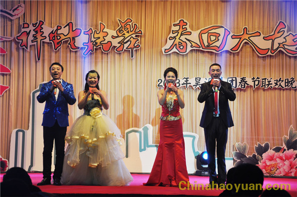 晚會在激情澎湃、喜慶熱烈的舞蹈《水鼓中國龍》中拉開帷幕。整臺晚會由員工們自編自演,相聲《超級模仿秀》、歌伴舞《新貴妃醉酒》、獨唱《我的歌聲里》,讓大家充分領略了昊源青年員工的多才多藝;小品《新白蛇傳》,幽默詼諧,貼近實際,使廣大觀眾笑聲不斷;舞蹈《塑業style》,充分表現了昊源員工齊心協力、用于創新的旺盛斗志。晚會節目構思巧妙,現場高潮迭起,掌聲、笑聲不斷,不僅給在場觀眾帶來了藝術的享受,也為廣大干部職工獻上了一道精制的文化大餐,演員們的精彩表演贏得了在場觀眾陣陣掌聲。