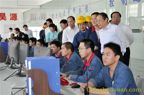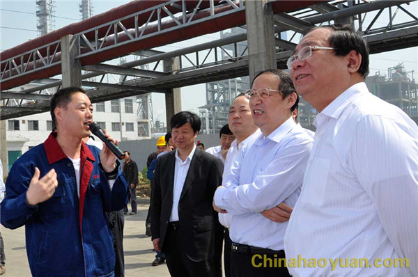 在公司航天爐粉煤氣化裝置生產現(xiàn)場,王學軍代省長首先聽取了阜陽市及潁東區(qū)發(fā)展規(guī)劃情況匯報。隨后,公司黨委書記、董事長鄭高潮就昊源集團發(fā)展歷史、目前生產經(jīng)營情況及發(fā)展規(guī)劃等向王學軍代省長作了詳細匯報。