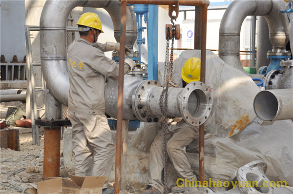 目前,航天爐項(xiàng)目二期工程的氣化工段主體工藝管道配接已完成,儀表調(diào)節(jié)閥安裝就位后,即可進(jìn)入吹除、試壓、試漏、試車階段。空分工段冷箱、甲醇洗工段大型塔器、合成工段設(shè)備均已安裝就位,并完成校正工作,內(nèi)、外管道已安裝完成80%。航天爐項(xiàng)目二期工程變換工段采用了全國首套“等溫水移熱”變換工藝,此項(xiàng)工藝與以往普通工藝相比,具有系統(tǒng)阻力小、副產(chǎn)蒸汽量多、熱量利用合理等優(yōu)點(diǎn),該工段目前土建已結(jié)束,正進(jìn)行設(shè)備的安裝、調(diào)試。