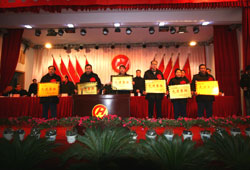 2008年2月2日,昊源集團在公司大禮堂隆重召開了“2007年度工作總結及表彰大會”。會上,阜陽市領導對公司2007年度的工作作了充分肯定,并對2008年度的工作提出了新的要求和建議。公司董事長饒金鐸,在會上對公司07年度的工作作了總結發言,同時還對08年度公司的發展進行了分析和布屬。最后,大會表彰了公司07年度作出突出貢獻的先進集體、單位和個人。