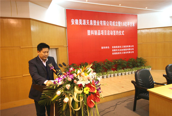 簽約儀式后,孫云飛和葉世渠共同為安徽昊源天泉塑業(yè)有限公司揭牌。