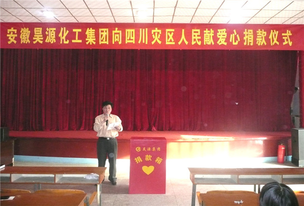 募捐開始時,昊源集團副總經理、工會主席高玉磊作了簡短的發言,表示對這次受災的群眾同情和慰問,堅信在黨中央、國務院的領導下,萬眾一心,眾志成城,一定能夠戰勝這次特大自然災害。
